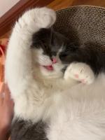 在小区车棚遇见的猫咪,是个弟弟听人说之前说过虐待逃跑出来,一直呆在车棚不离开,特别粘人,每天等着我喂,长期呆在车棚引发车主的不满意,现在带回家暂时关在一个房间,不乱叫,很听话,但是家里很多只猫咪了,无法饲养,希望找一个好人给他一个家,已接种疫苗,已驱虫,