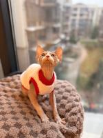 纯种德文和无毛猫的串串。4个月尴尬期,目前面部尾巴脚脚有卷毛,后期背部可能会长毛毛出来。不掉毛,性格非常好,粘人。