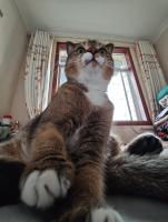 是一只很可爱的小奶牛,因为跟很多咪咪养在一起可能不大亲人单独养的话比较好 最好不要在农村养~